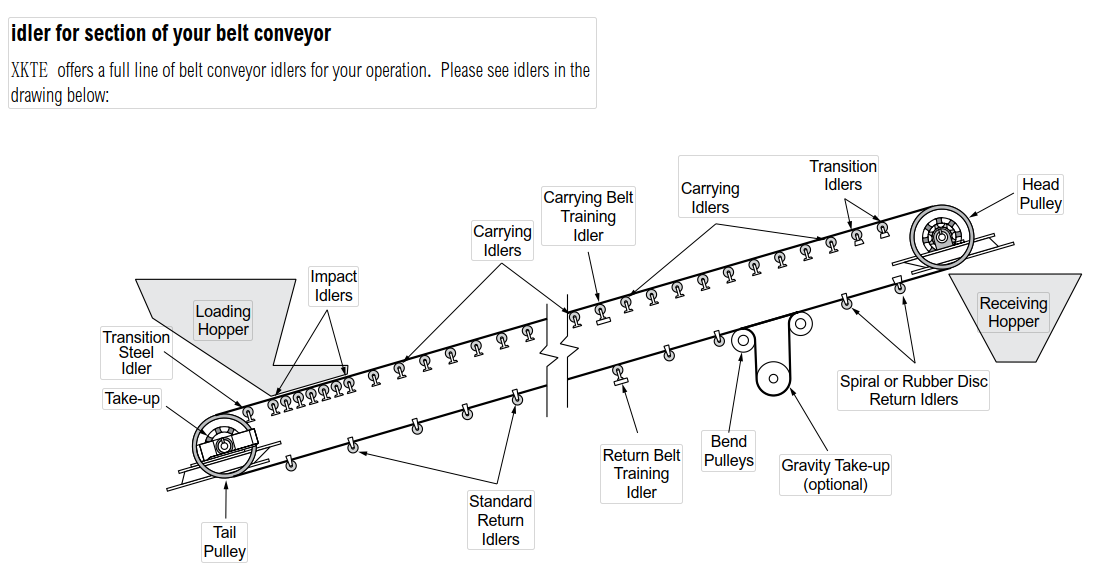 Băng tải i dler là một phần quan trọng của tất cả các loại băng tải, nó hỗ trợ các băng chuyền và giữ cargos. Chẳng hạn như người lượn lượn, người làm biếng, người làm biếng, những người gặp phải CEMA, ISO hoặc bất kỳ tiêu chuẩn nào khác. Thiết kế nhàn rỗi băng tải C bao gồm nhiều con lăn, nơi các bộ phận khác nhau của người nhàn rỗi kết nối với băng tải ở các điểm khác nhau để giữ cho dây đai được định tuyến và hoạt động tốt. Những thiết kế này cũng có thể bao gồm kệ kim loại để ổn định.